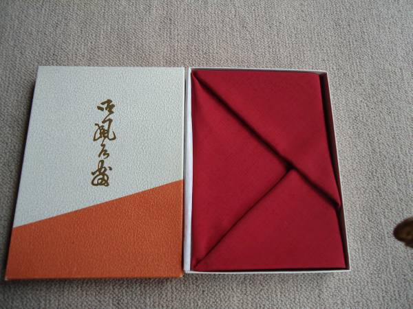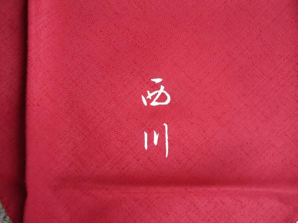 苗字(西川)が印刷された赤い紬調風呂敷