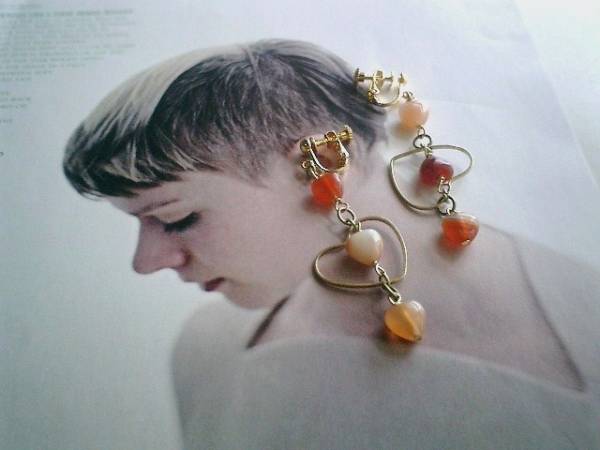 ノスタルジック・スタイル・・シリーズです♪ハート&ハート・・キュートなカーネリアンとハートのチャームのイヤリングです♪20ミリ位のハートのチャームに8ミリのカーネリアンのハートを合わせてシンプルモダンしています♪長さは全長6・5センチ位です♪ピアスにも変更出来ます♪お揃いのネックレスやブレスレットも出品しています♪♪シンプルで飽きのこないいつまでも着けられるデザインを考えて作りました!ハンドメイドをご理解頂いてノークレーム、ノーリターンでお願いします