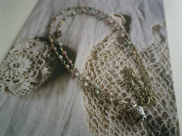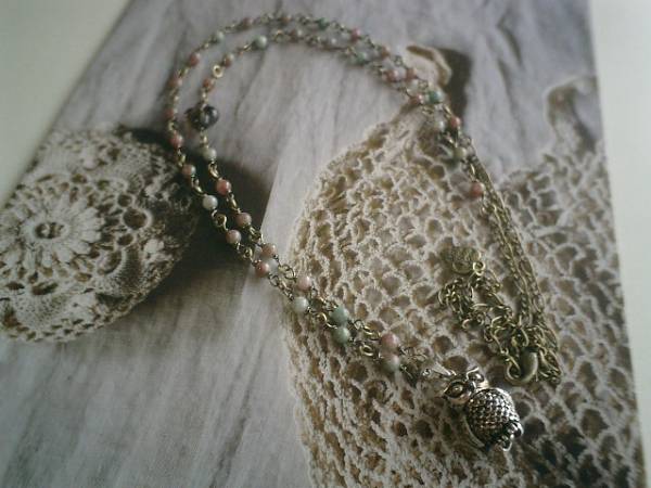 女の子の憧れ・・シリーズです♪シックなグリーンガーネットにキュートなお澄まし梟さんやスモーキークォーツのお花を合わせてアンティークモダンしています♪グリーンガーネットは4ミリの丸玉です♪梟さんは全長2センチ位です♪翼やお顔が動く丁寧な作りです♪ネックレスの長さは全長86センチ位で調節自由です♪♪お揃いのブレスレットも出品しています♪シンプルで飽きのこないいつまでも着けられるデザインを考えて作りました!ハンドメイドをご理解頂いてノークレーム、ノーリターンでお願いします |