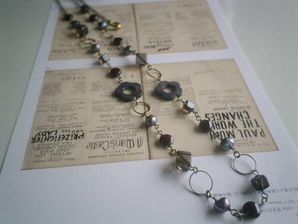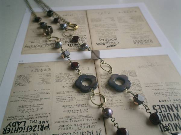 エスニック・気分・・シリーズです♪日曜日のジャズ・・シックな淡水パールのネックレスです♪ガーネットやスモーキークォーツやグレーシェルのリングやスクエア、フラワーなどのデザイン違いを合わせて巴里っぽい雰囲気です♪グレーパープルの淡水パールは8ミリ位のバロック、スモーキークォーツは7ミリ、9ミリのスクエア、ガーネットは8ミリのコイン、グレーシェルは20ミリ位のフラワーです♪長さは全長88センチ位で調節自由です♪2連にされても素敵です♪同じデザインの長さ違いのネックレスやブレスレットやピアスも出品しています♪♪シンプルで飽きのこないいつまでも着けられるデザインを考えて作りました!ハンドメイドをご理解頂いてノークレーム、ノーリターンでお願いします