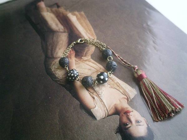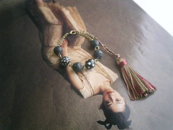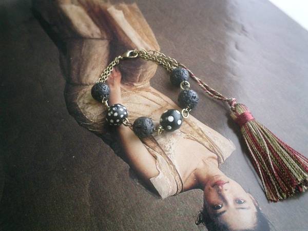 ロマンチックを集めて・・シリーズです♪シックな黒と水玉・・マットな黒のラバーストーンのブレスレットです♪ナチュラルな雰囲気が素敵なラバーストーンにアンティークのとんぼ玉を合わせてさりげなくロマンチックしています♪ラバーストーンは10ミリの丸玉、とんぼ玉は大きさ違いのドットです♪長さは全長23センチ位で調節自由です♪♪お揃いのネックレスも出品しています♪シンプルで飽きのこないいつまでも着けられるデザインを考えて作りました!ハンドメイドをご理解頂いてノークレーム、ノーリターンでお願いします