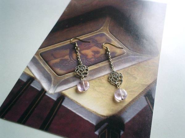 ロマンチックを集めて・・シリーズです♪アメジストと薔薇・・神秘的なアメジストのピアスです♪シックな紫のアメジストに薔薇のチャームを合わせて可憐な表情です♪アメジストは10ミリのコインです♪長さは全長7センチ位です♪イヤリングにも変更出来ます♪お揃いのネックレスやブレスレットも出品しています♪シンプルで飽きのこないいつまでも着けられるデザインを考えて作りました!ハンドメイドをご理解頂いてノークレーム、ノーリターンでお願いします