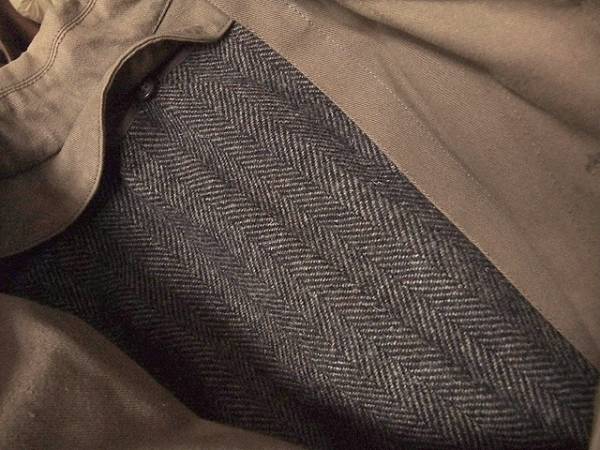 DUETRIO ライナー付きコートです。色はブラウン。表地はかなり厚手のコットンで、ずっしり重みが有りしっかりしてます。着脱出来る、ブランケット地のライナー付き。◆サイズは内タグを切り取られているようで不明ですがかなり大きめなサイズで着丈約119cm・肩幅約69.5cm・袖丈約45cm・身幅約69cmです。◆USEDです。表地に若干の使用感(部分的な色焼け?、織りムラ等)が御座いますがダメージ等有りません。◆