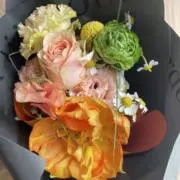 花柄半袖ワンピース 紫とベージュ 淡い色味